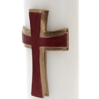 Candela cero da mensa con croce a rilievo delle dimensioni di 8×30 cm per Liturgia, Avvento e Quaresima, in cera bianca di ottima qualità. Prodotta in italia.