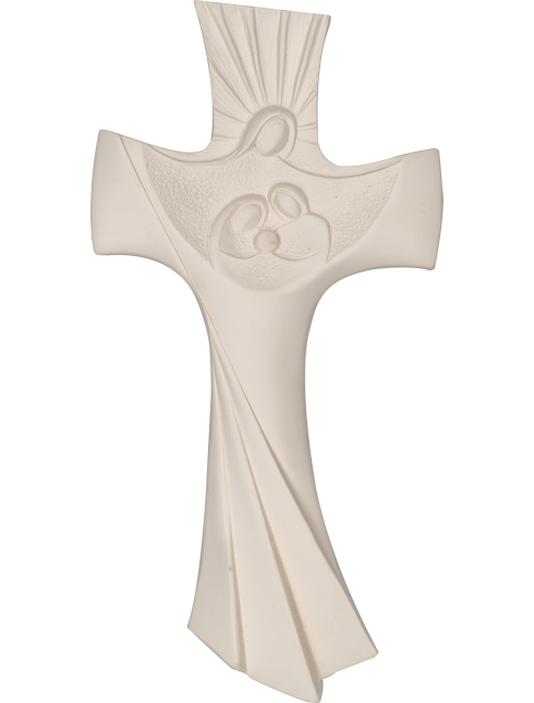 croce in polvere di marmo bianco con cristo stilizzato e santa famiglia