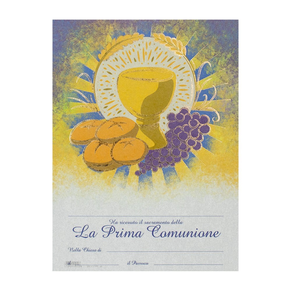 pergamena ricordo prima comunione con dettagli in oro a caldo