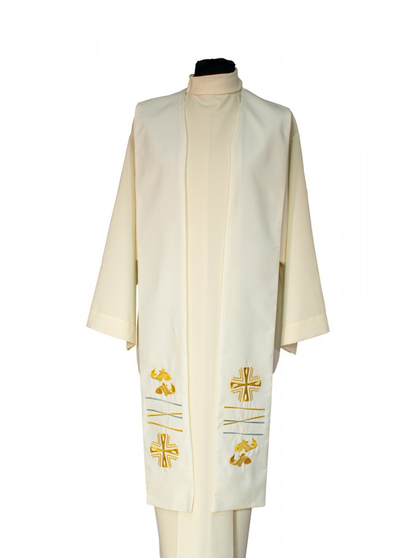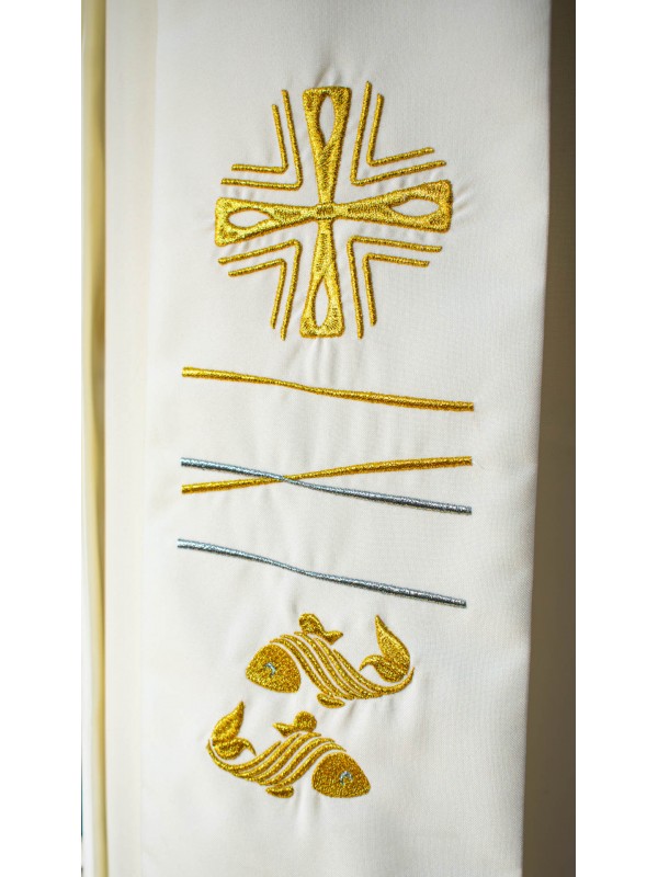 STOLA SACERDOTALE CON RICAMO CROCE E PESCI. PRODOTTO ITALIANO