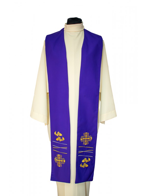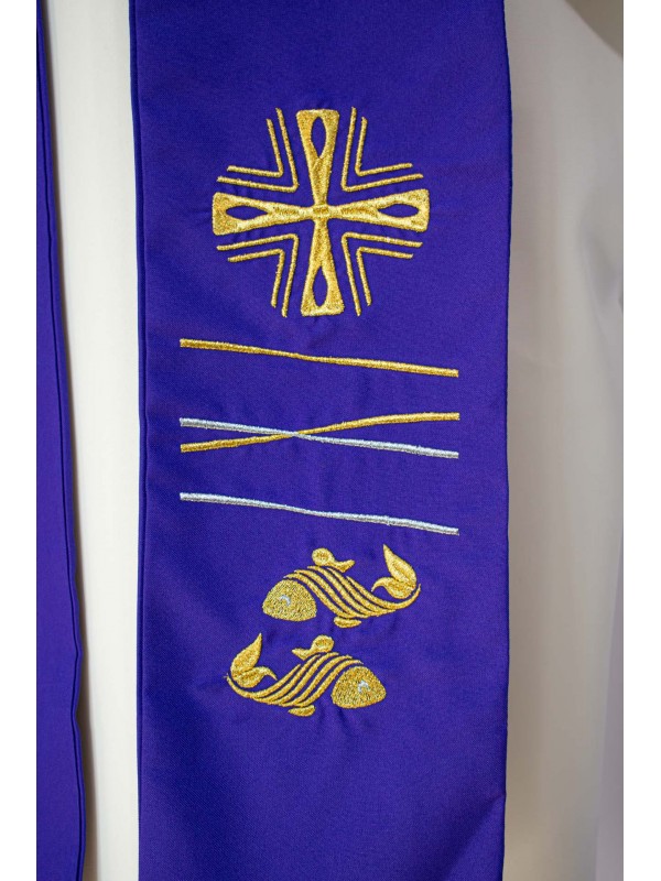 STOLA SACERDOTALE CON RICAMO CROCE E PESCI. PRODOTTO ITALIANO