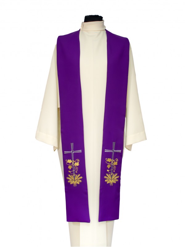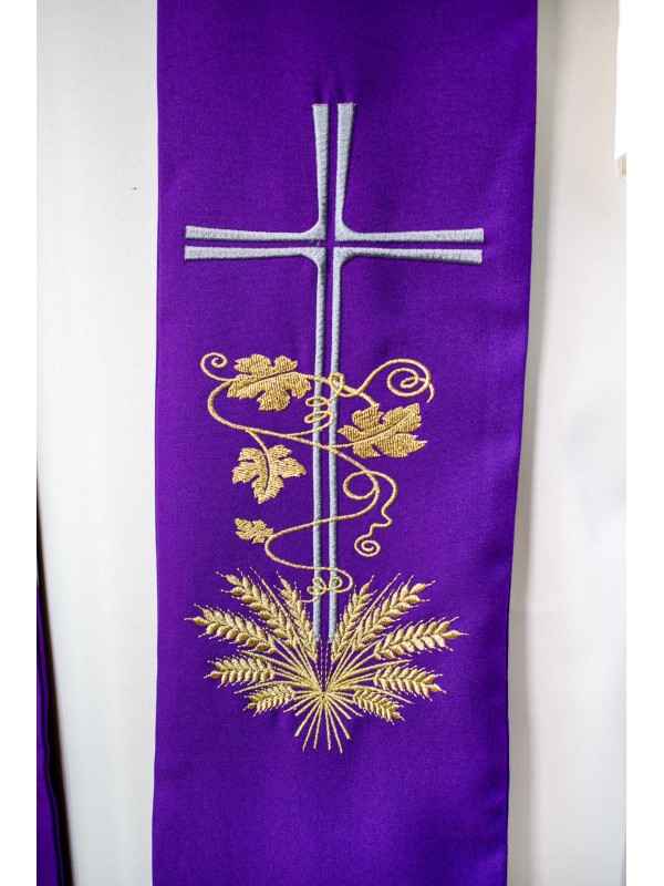 STOLA SACERDOTALE CON RICAMO CROCE E SPIGHE. PRODOTTO ITALIANO